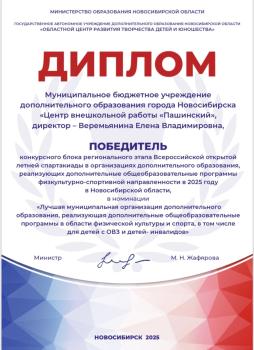 Победа на Региональном этапе конкурса по физической культуре в номинации "Лучшая муниципальная организация дополнительного образования, реализующая ДООП в области физической культуры и спорта, в том числе для детей с ОВЗ и детей-инвалидов"!